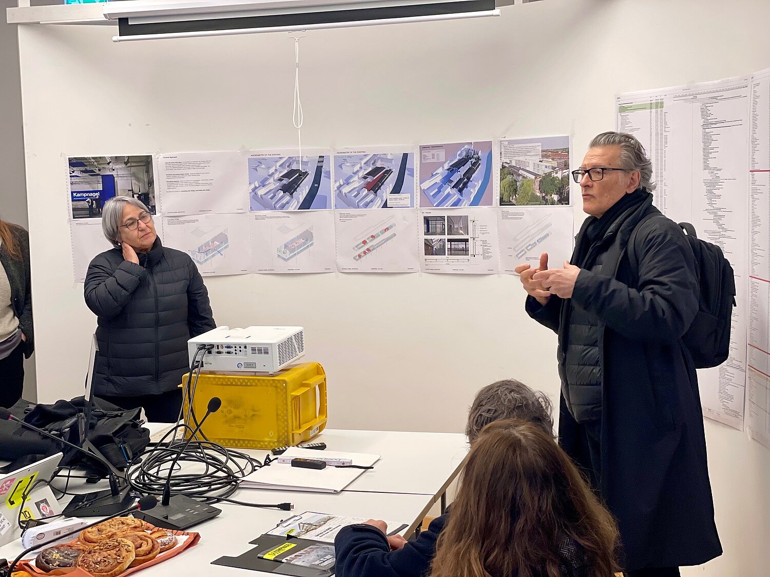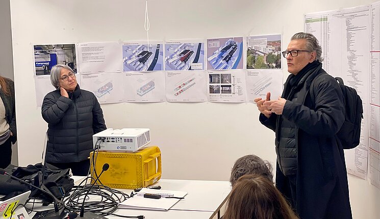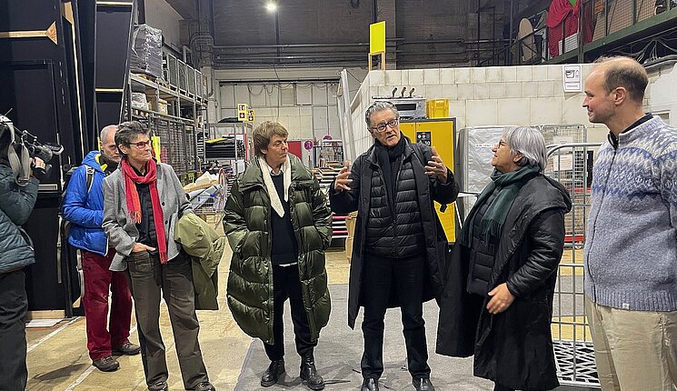 Im Mittelpunkt der Hintergrundführung standen die architektonischen und konzeptionellen Leitlinien des Projekts, der geplante Bauablauf sowie die Auswirkungen auf den laufenden Betrieb. Kampnagel bleibt während der gesamten Bauzeit geöffnet und bespielt – der Ort wird zu einer sogenannten performativen Baustelle, in der künstlerische Produktion, Öffentlichkeit und Transformation sichtbar ineinandergreifen.