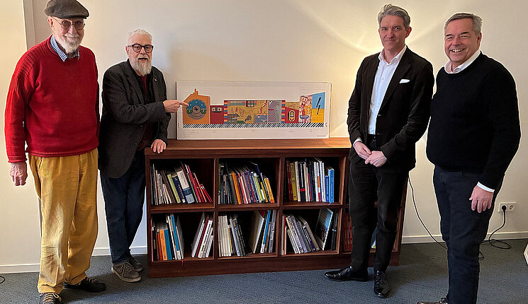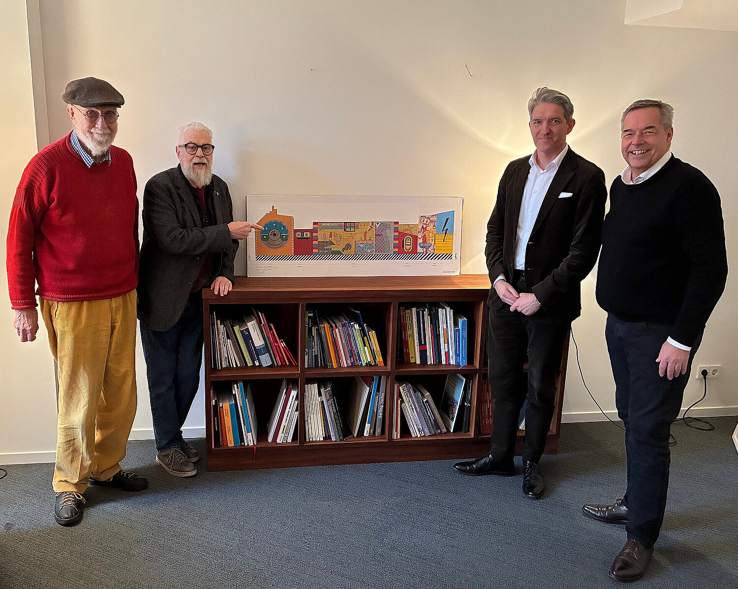 Jan Zunke und Martin Sowinski, Geschäftsführer der Sprinkenhof GmbH: „Das Gruenspan-Wandbild ist weit mehr als eine Fassadengestaltung. Es ist eines der größten Street-Art-Objekte Europas. Mit der geplanten Erweiterung des Neuauftrags des bekannten Wandbilds sichern wir nicht nur den Erhalt dieses einzigartigen Werks, sondern machen seine Bedeutung auch für kommende Generationen sichtbar. Besonders freuen wir uns darüber, dass Prof. Dieter Glasmacher und Prof. Werner Nöfer nach mehr als fünf Jahrzehnten erneut gemeinsam künstlerisch tätig werden und diese prägende städtische Immobilie mit ihrer Arbeit zusätzlich zu der Sanierung weiter aufwerten.“