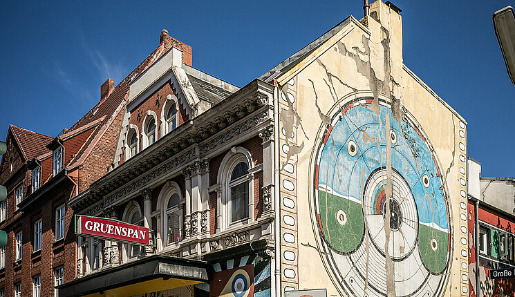 Das großformatige Wandbild wurde von Dieter Glasmacher und Werner Nöfer entworfen und 1969 erstmals auf der südlichen Fassade des Gruenspan-Gebäudes realisiert. Mit einer Fläche von rund 600 Quadratmetern gilt es als erstes und eines der größten Pop-Art-Wandbilder beziehungsweise Street-Art-Objekte Europas und genießt bis heute hohe internationale Anerkennung. Der originale Entwurf des Wandbildes wird im Kupferstichkabinett der Hamburger Kunsthalle verwahrt und unterstreicht die herausragende kunsthistorische Bedeutung des Werkes für Hamburg.