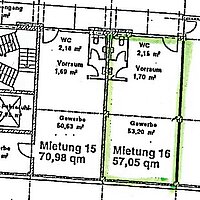 Diese attraktive Gewerbefläche mit einer Gesamtgröße von 54,50 m² befindet sich im 2. Obergeschoss der Einheit 16 eines gepflegten Gebäudekomplexes. Die Fläche wird im gegenwärtigen Zustand übergeben und eignet sich ideal für verschiedene gewerbliche Nutzungen.