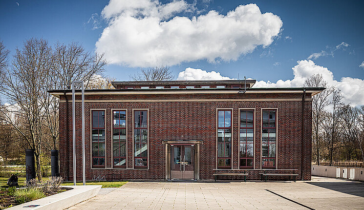 Das denkmalgeschützte ehemalige Wasserwerk wird seit 2017 als kulinarischer Campus genutzt und bietet sowohl als Eventlocation als auch als Café für Parkbesucher*innen viele köstiliche Wege, die Gäste zu erfreuen. Dabei wurde das ehemalige Verdünstungsgebäude zu einem Café umgebaut und die Maschinenhalle dient als buchbare Eventlocation für Hochzeiten und größere Feste. Eingebettet in den Wilhelmsburger Rathauspark ist es Teil eines neuen aufstrebenden Stadtteils, der dabei ist, sich selbst neu zu erfinden.